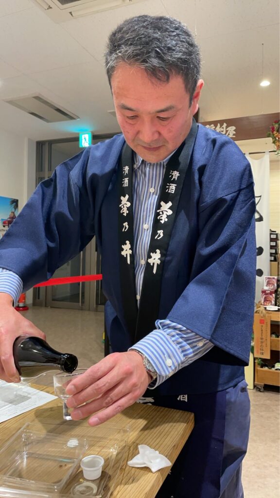 真剣にお酒を注いでいる様子です。今回は人数も少なかったので直接お注ぎしたりすることがたくさんできました。