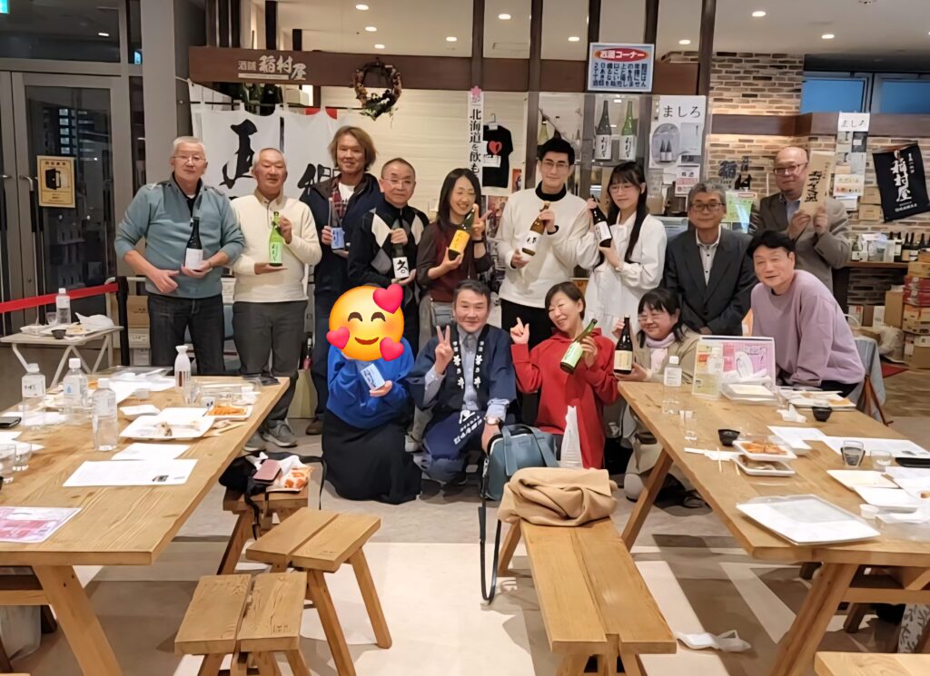 新函館北斗駅、酒舗稲村屋さんでの「酒舗稲村屋久⑤の会」集合写真です。