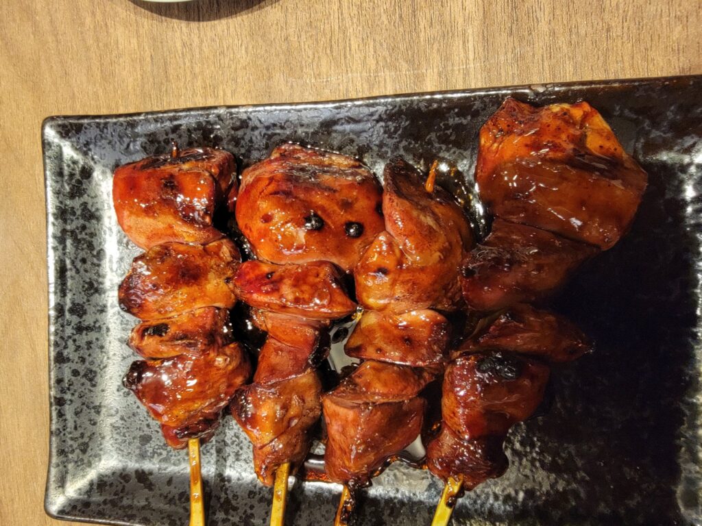 レバーの焼き鳥です。レアーかしっかり焼きかアンケート取られました。