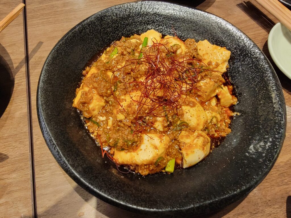 麻婆豆腐だったと思います。こちらで掲載の写真は全ての料理ではないです。一部です。私はお客様にお酒を注いだりお話をしたり合間に料理と日本酒をいただきました。