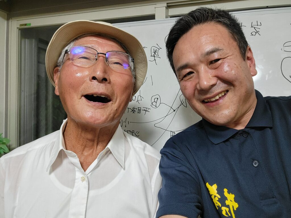 おまけ写真です。乾杯していますが、目の焦点が合っていませんね。