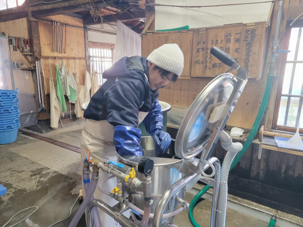 令和7年12月7日(日)初米洗いを長男とやりました。水が溜まらないとのトラブルがありましたが従業員に電話して対応してくれて無事に行えました。最初の米は青森県産「華吹雪」の米です。精米歩合55%でした。50Kgの白米を10kgづつ容器に入れて洗米をしました。洗米機はウッドソンのバッチ式です。