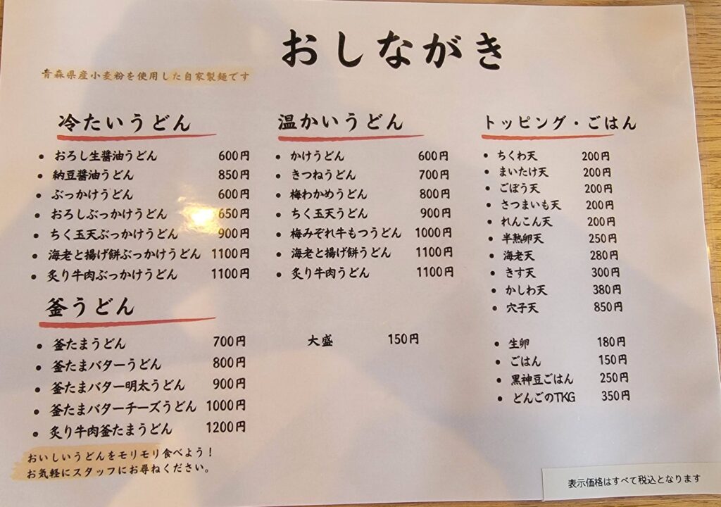 うどんDONCOのおしながき