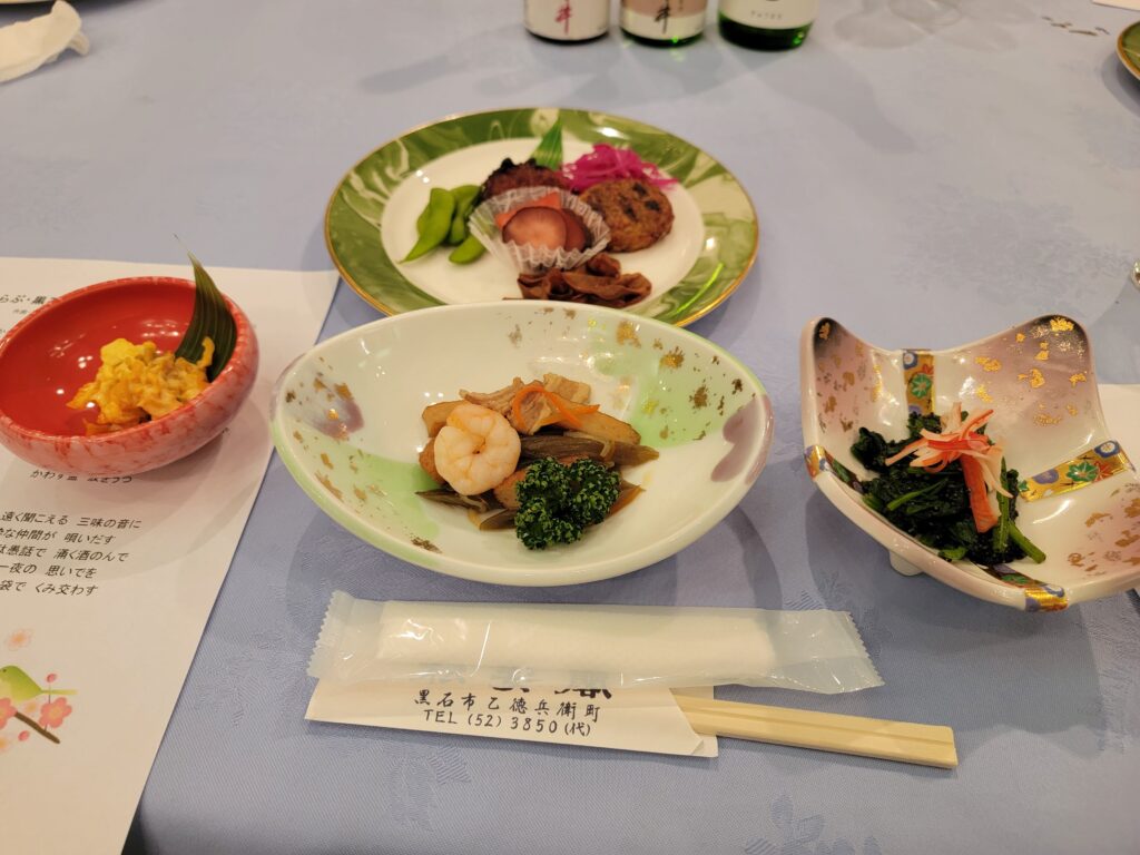 2026(令8)黒石地酒をたしなむ会3月例会の料理です。毎回4皿です。おいしくいただきました。