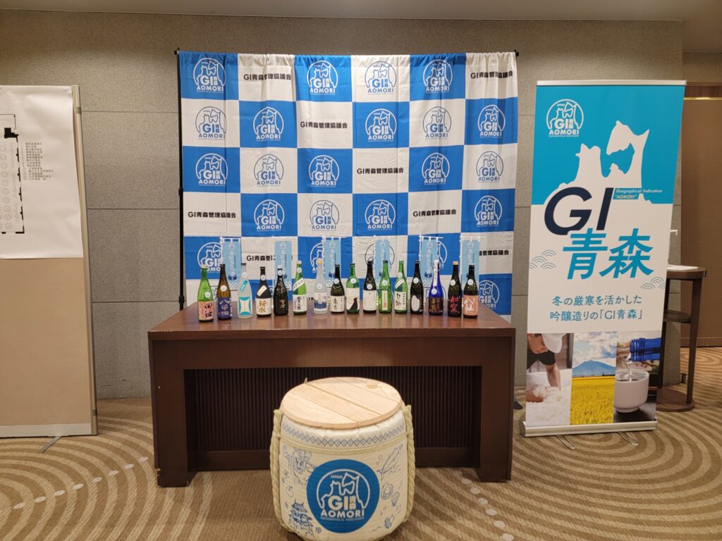 第21回青森の地酒を味わう会受付近辺の紹介です。GI青森の商品を紹介しています。