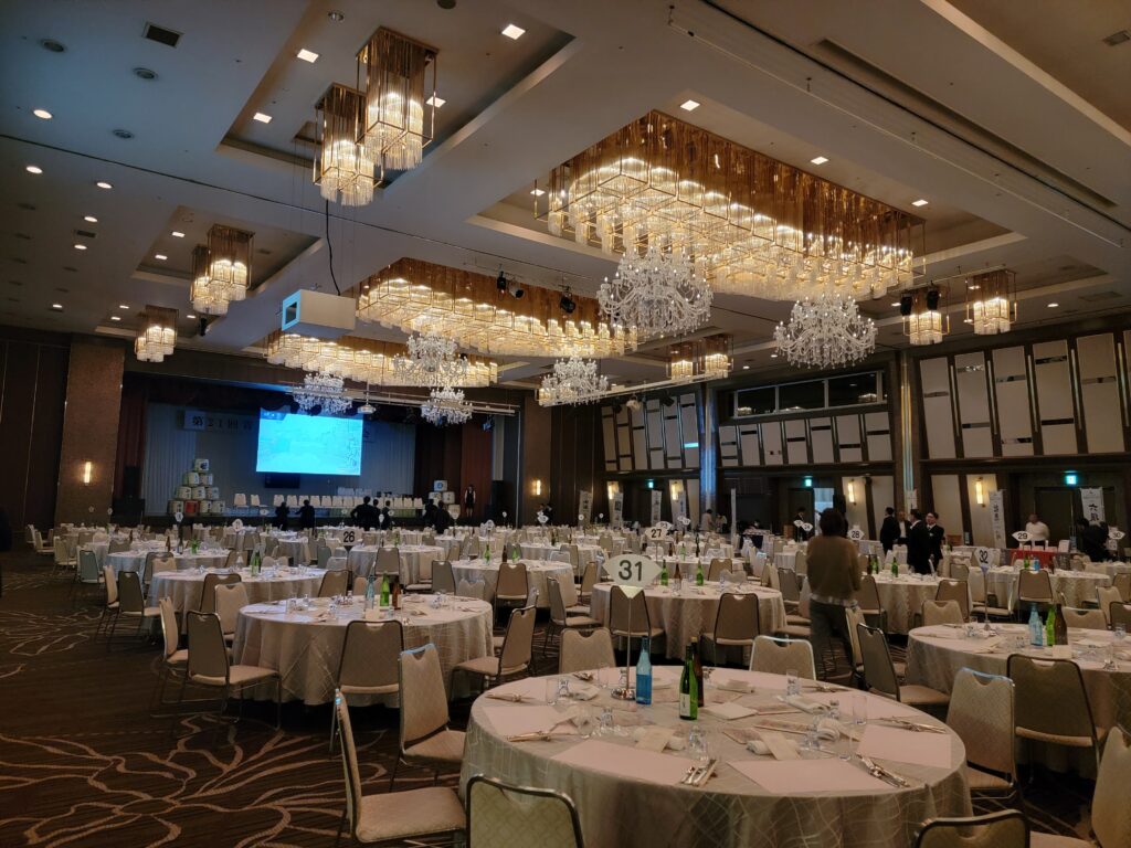 第21回青森の地酒を味わう会の会場です。ホテル青森の孔雀の間です。開始前の様子です。