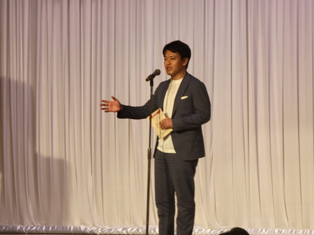 2026(令8)第21回青森の地酒を味わう会、来賓挨拶は青森県知事宮下宗一郎さんです。GI青森のスタートアップイベントに引き続き来賓挨拶していただけました。ありがとうございます。