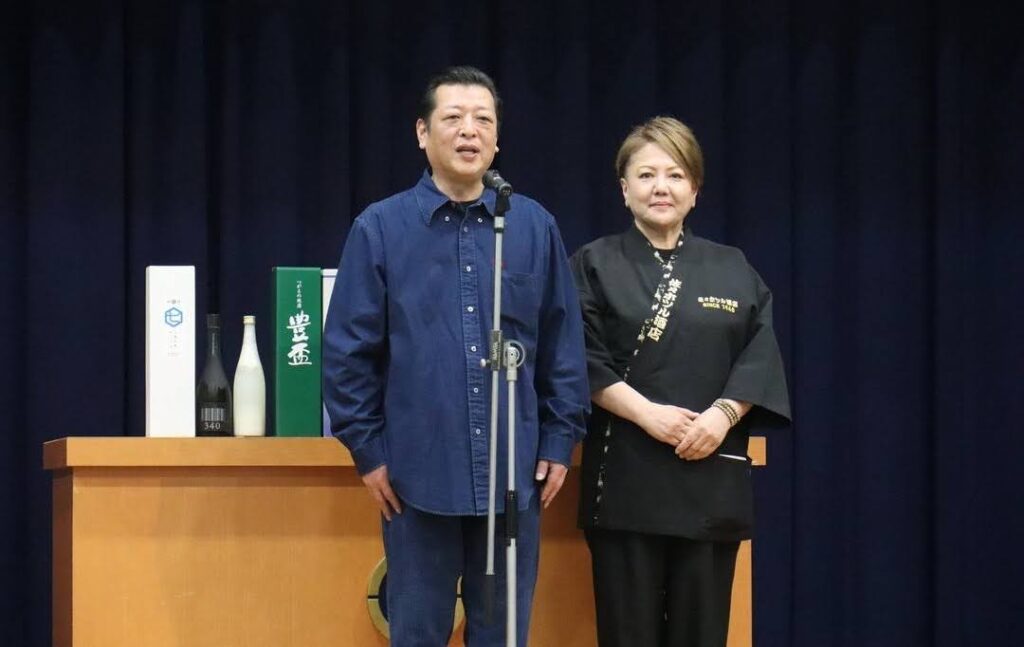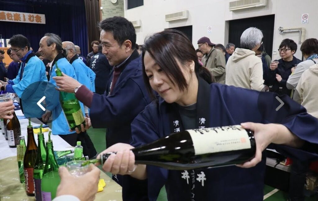 2026(令8)佐々木ツル酒店 日本酒を楽しむ会の接客の様子です。お手伝いのたかみさんも大活躍です。