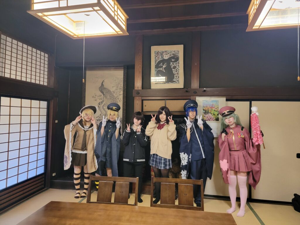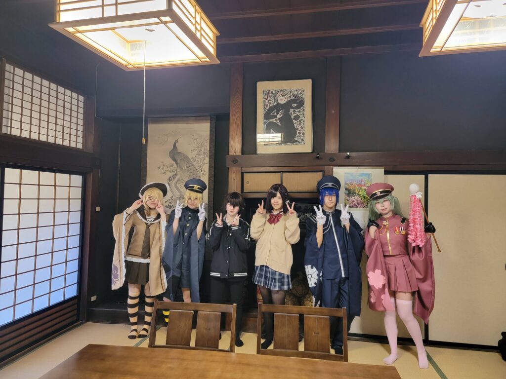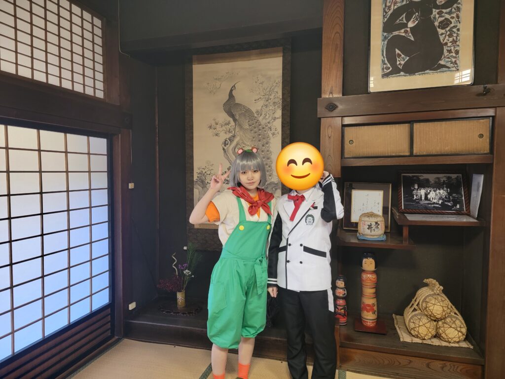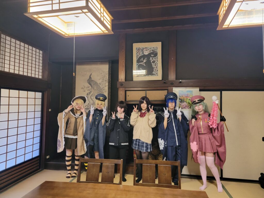 コスプレの記念撮影です。庭園の松が折れて座敷での撮影はお断りして申し訳ございませんでした。